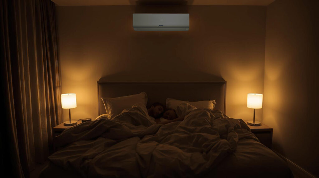 Technologia antykorozyjna chroni jednostkę zewnętrzną przed rdzą, wilgocią, kurzem i owadami, zapewniając dłuższą żywotność urządzenia. Tryb nocny automatycznie dostosowuje temperaturę podczas snu, podnosząc lub obniżając ją o 1–2°C co 60 minut, co poprawia komfort nocnego wypoczynku.