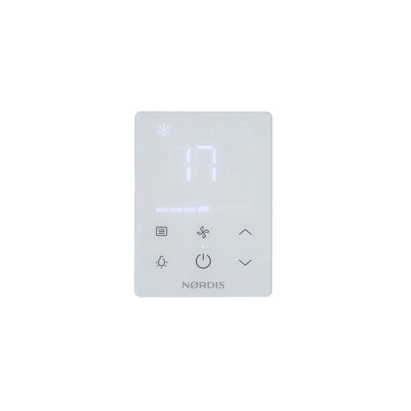 Urządzenie standardowo wyposażone jest w przewodowy sterownik NC-75A, który zapewnia precyzyjną regulację temperatury, kontrolę prędkości wentylatora oraz wybór trybu pracy. Intuicyjny sterownik z wyświetlaczem LED umożliwia wygodną i dokładną obsługę na co dzień.