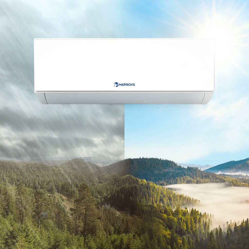 Każdy klimatyzator NØRDIS NOVA jest wyposażony w nowoczesną sprężarkę inwerterową, która zapewnia niezawodną pracę w zakresie temperatur od -25°C do +53°C. Urządzenia pracują wyjątkowo cicho — tylko 22 dB — oraz oferują inteligentną kontrolę przepływu powietrza, która równomiernie rozprowadza nawiew w całym pomieszczeniu. System reaguje szybko, osiągając wybrany tryb chłodzenia lub ogrzewania w ciągu kilku chwil, a funkcja zarządzania poborem mocy pomaga oszczędzać energię bez utraty komfortu.
