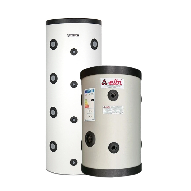 Nieemaliowane zbiorniki buforowe ELBI z serii ACF to wysokiej jakości techniczne zbiorniki bezwładnościowe przeznaczone do instalacji klimatyzacyjnych i grzewczych. Zwiększają bezwładność cieplną oraz poprawiają efektywność energetyczną systemów ogrzewania lub chłodzenia poprzez magazynowanie i równomierne oddawanie ciepła lub chłodu. Zbiorniki te doskonale sprawdzają się w instalacjach centralnego ogrzewania, szczególnie współpracujących z pompami ciepła. Zbiorniki ELBI mogą być montowane na ścianie lub ustawiane na podłodze.